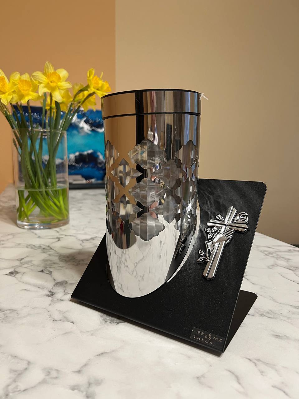 Лампадка на сонячній батареї з Хрестом, круг (срібло)