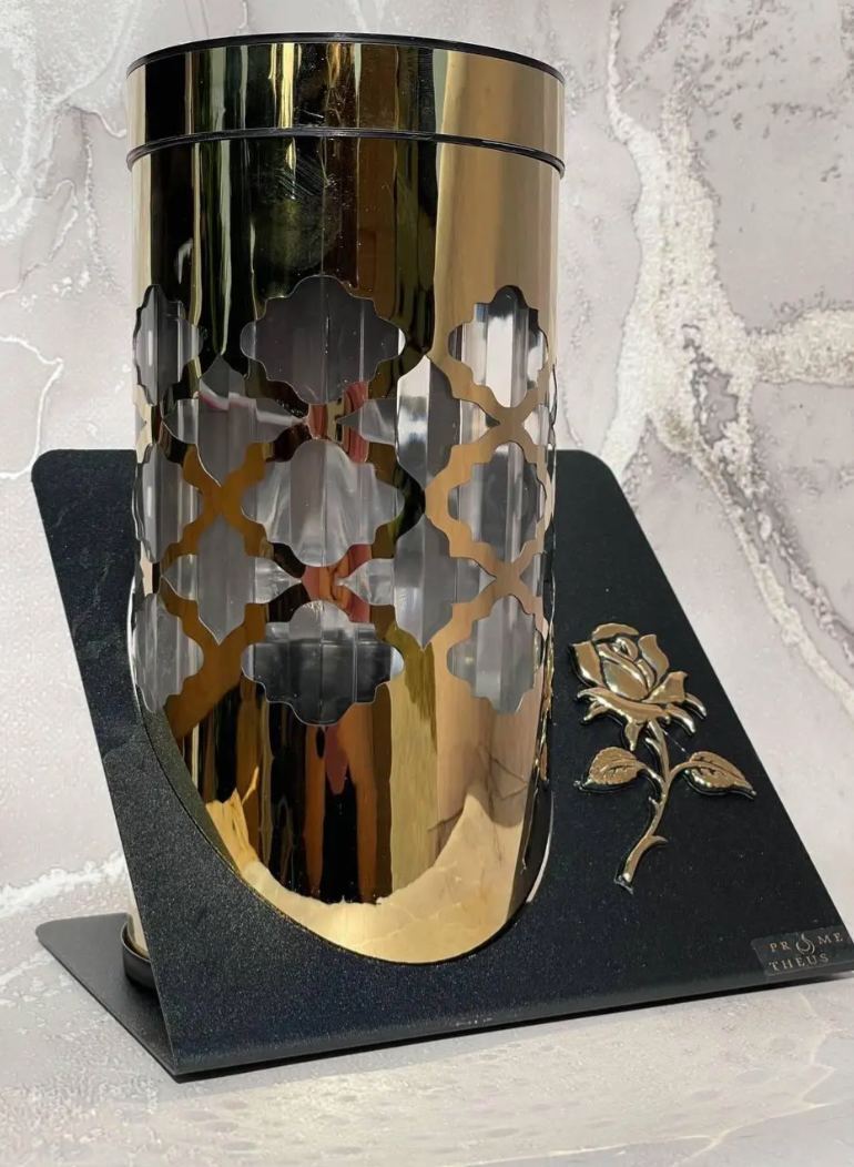 Лампадка на сонячній батареї з трояндою, круг (золото)